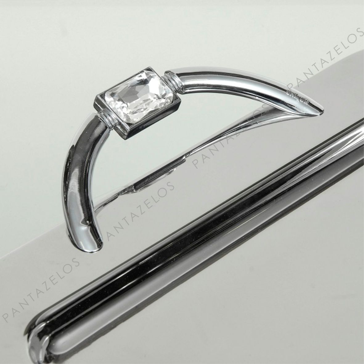 Δίσκος ανοξείδωτος παραλληλόγραμμος στολισμένος με διάφανη πέτρα στα χέρια.