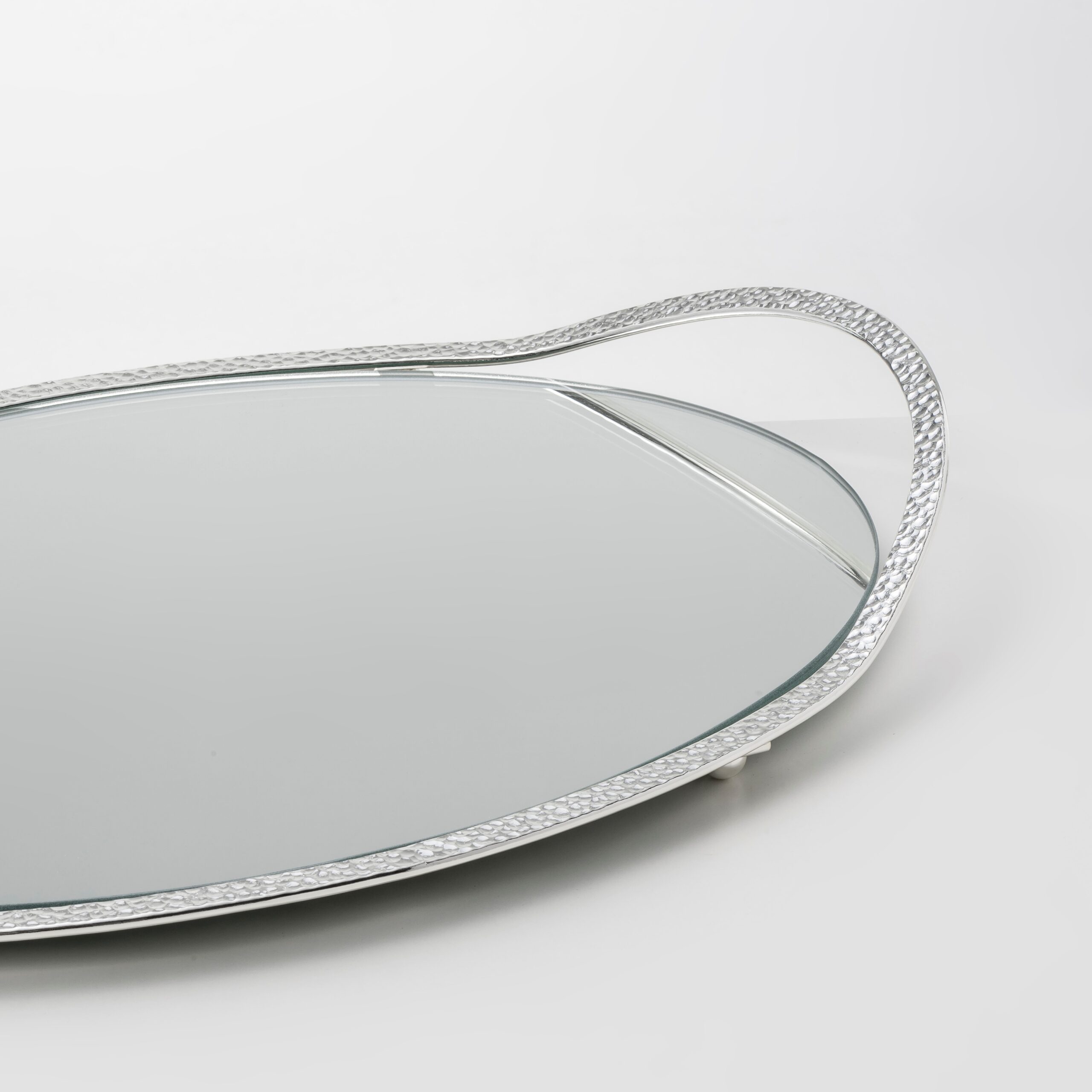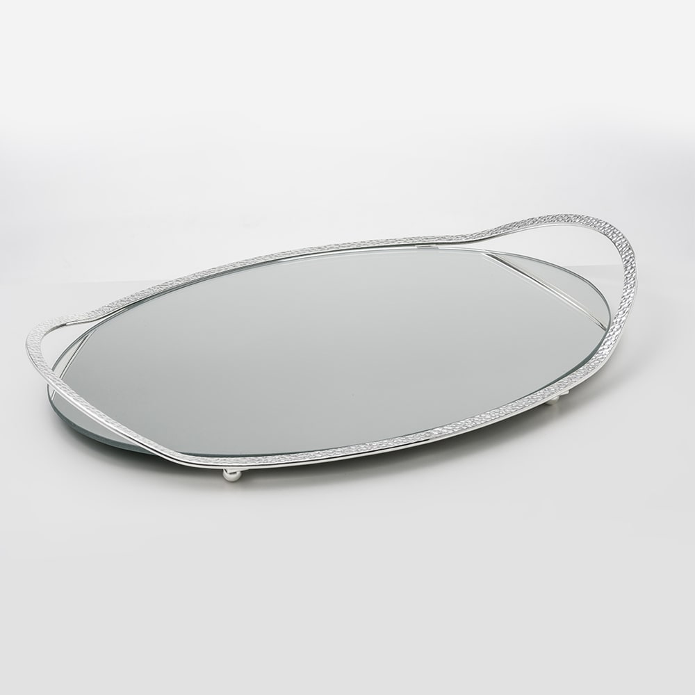 Δίσκος οβάλ με καθρέπτη και επάργυρο σφυρήλατο πλαίσιο.