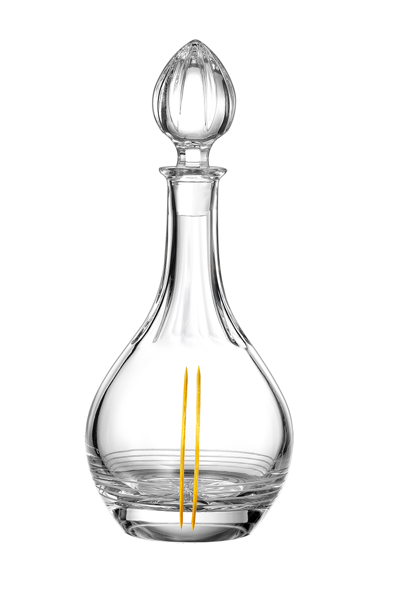 Κρυστάλλινη καράφα Bοημίας, με σχέδιο δύο κάθετες γραμμές σε χρυσό χρώμα.