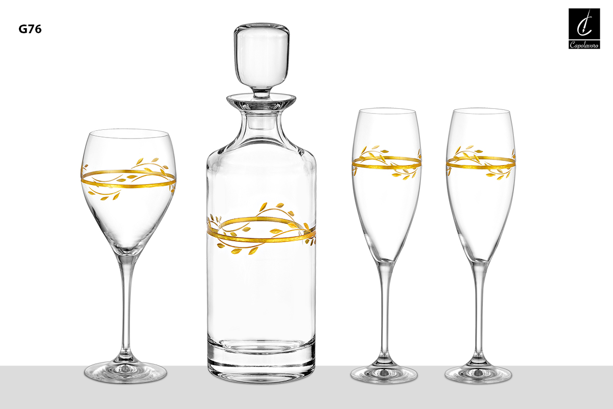 Μπορεί να συνδυαστεί με αντίστοιχη καράφα, ποτήρια σαμπάνιας, όπως επίσης και με γυάλινο δίσκο.