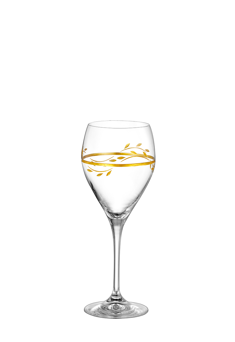 Κρυστάλλινο ποτήρι κρασιού χαραγμένο με διαμάντι σε χρυσό χρώμα με φύλλα.