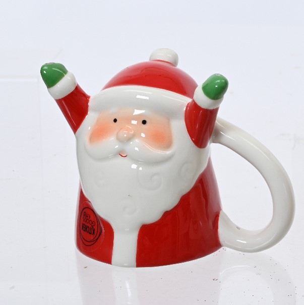 Χριστουγεννιάτικη κούπα Άγιος Βασίλης με τα χέρια σηκωμένα ψηλά σε κόκκινες αποχρώσεις. Η κούπα είναι ανάποδη όταν την χρησιμοποιεις δηλαδή το σχέδιο είναι ανάποδα.