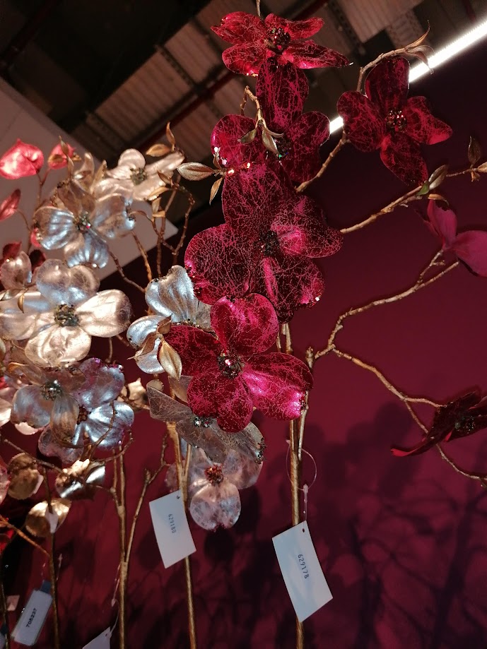 Χριστουγεννιάτικο κλαδί με κόκκινα άνθη και χρυσο κλαράκια.