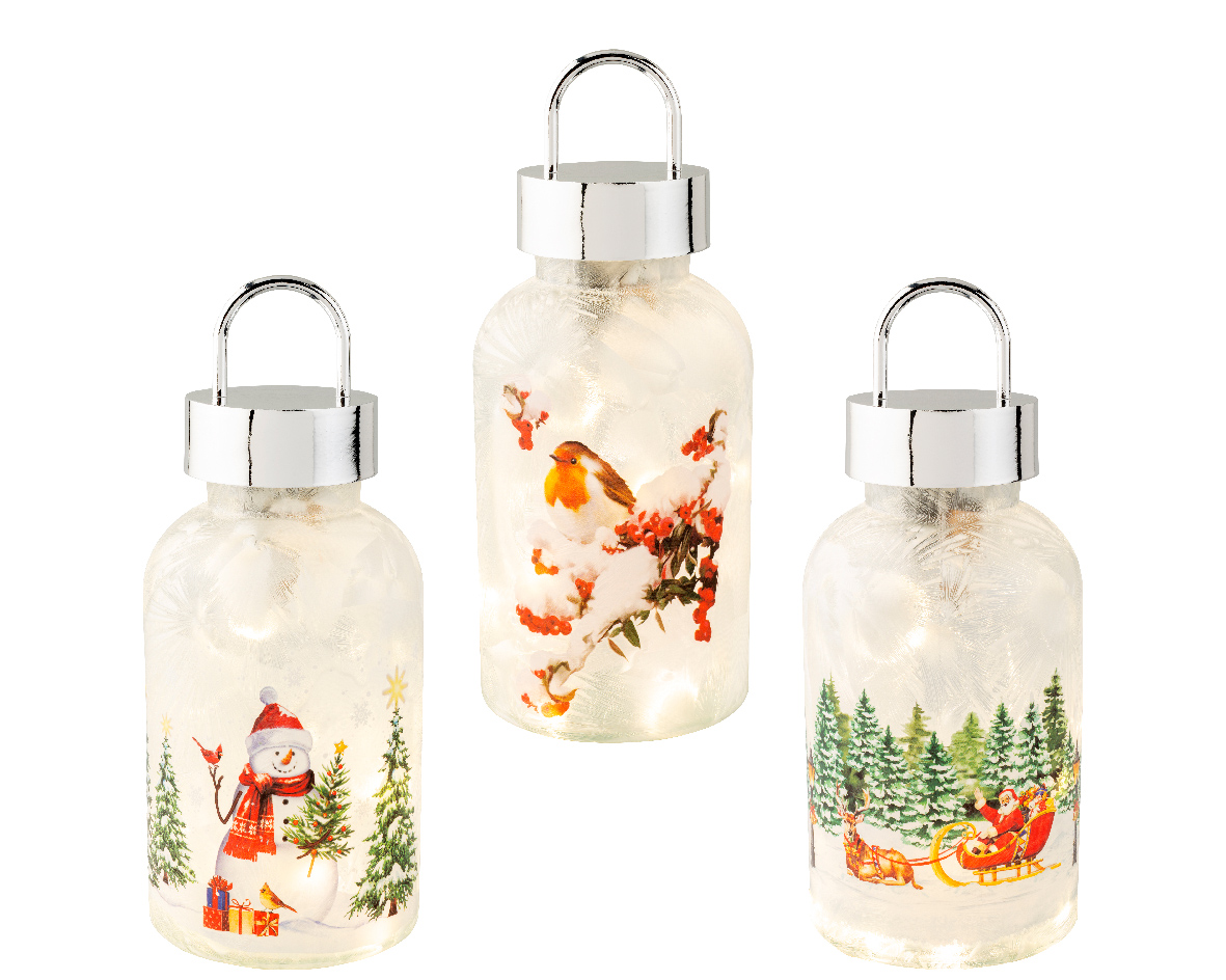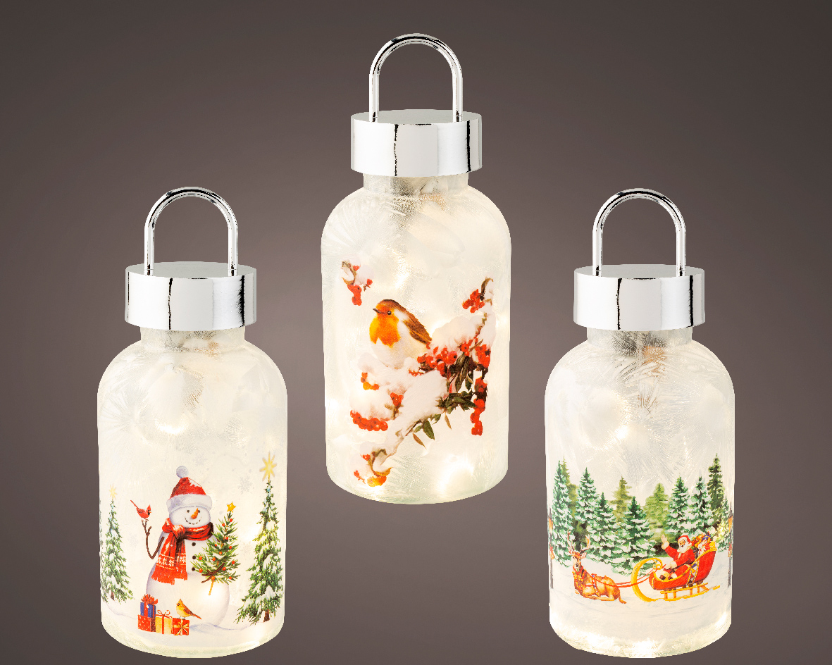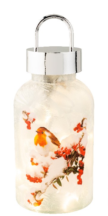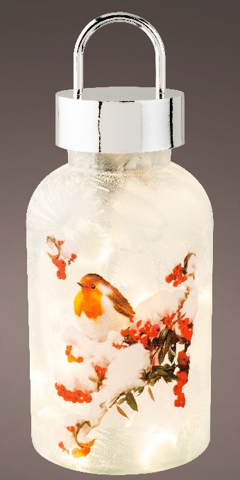 Χριστουγεννιάτικο φωτιζόμενο φαναράκι με κοκκινολαίμη